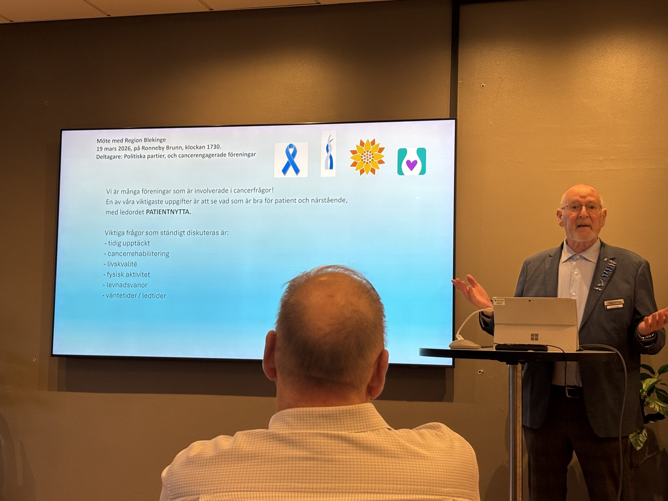 Prostatacancerföreningen Viktor, Osteoporosföreningen Blekinge, Melanomföreningen och Gyncancerföreningen fanns på plats på Ronneby Brunn för att samtala om framförallt framtidens cancervård inom regionen.